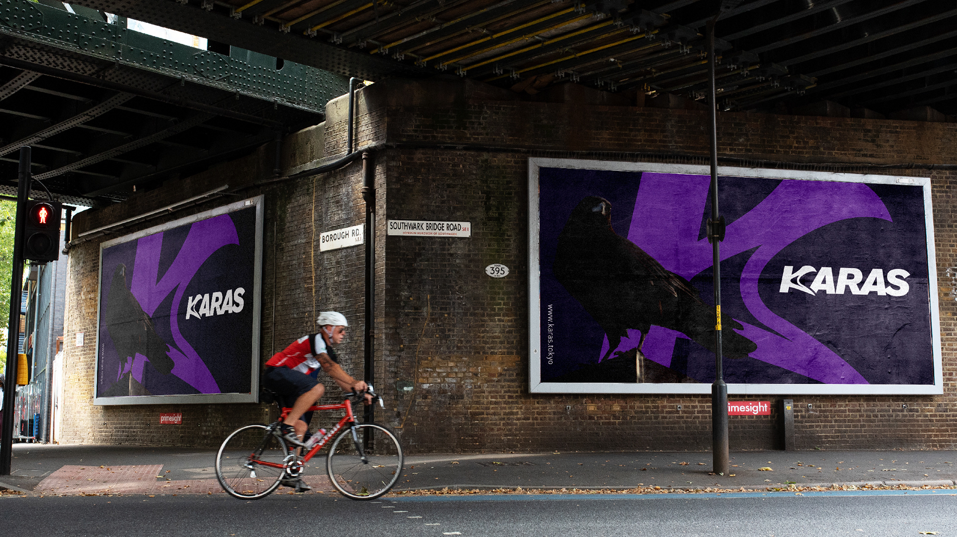 2020年、コロナ禍に誕生したネックゲイターブランド『KARAS』のロゴデザイン。 ブランドネームであるカラスの嘴をモチーフにデザイン。 限りなく黒に近いパープルをイメージカラーに設定し展開。