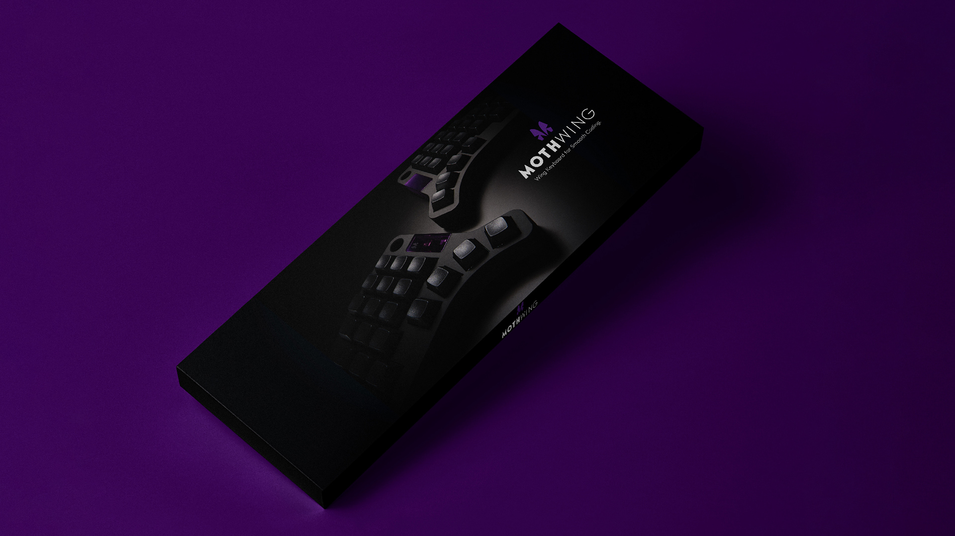 株式会社BOXが企画、開発、販売を手掛ける分割型キーボード "MOTHWING"における、 商品のネーミング開発からロゴデザイン、世界観構築、キービジュアルのアートディレクション、 パッケージデザインまで、一貫したデザインを担当しました。